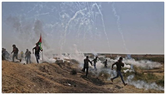 Fransız haber ajansı AFP, İsrailli keskin nişancıların görüşünü sınırlamak isteyen bazı Filistinli protestocularun yoğun duman çıkarmak için lastikleri ateşe verdiklerini, İsrail askerlerinin ise biber gazıyla gruba müdahale ettiğini bildirdi.